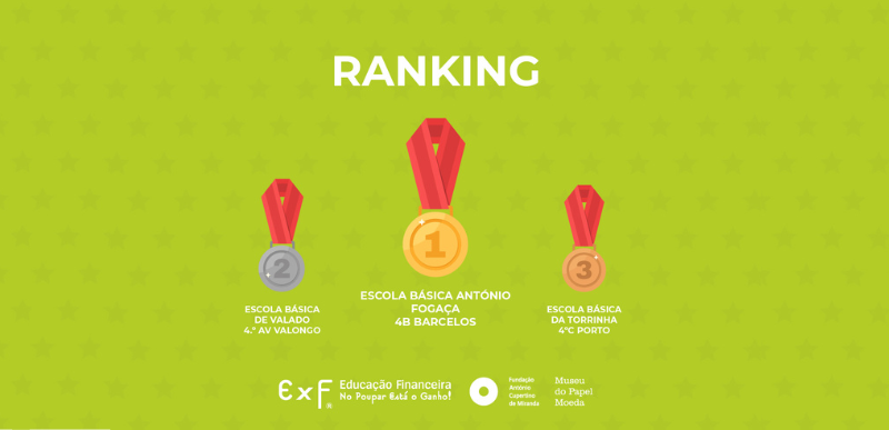 Descubra quem conquistou os primeiros lugares do ranking em janeiro! Para a sua turma entrar no próximo pódio, os alunos devem completar as fichas de trabalho disponíveis na plataforma do projeto e assim acumular moedas para subir no ranking.